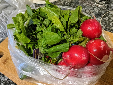 Let me start by saying, I hope you have cloth vegetable bags, they have them in a variety of materials available at health food stores. When you bring your vegetables home take them out of the plastic bags they came in. Plastic causes vegetables to rot much faster. Trim the greens from radishes, turnips, and carrots but do not cut into the actual vegetable just trim off the greens. The greens of radishes and turnips can be used in salads, soups and stir frys’ or cooked as you would other greens. They are very spicy and go bad quickly so use them soon after you bring them home. Rinse them and discard any bad ones, bruised is not bad, yellow or rotten is bad. Beet greens can be used as well but should be cooked, I find they are best used in a beef flavored soup. Carrot greens taste a little like parsley. After all of your vegetables are clean place them in clean cloth bags for greens add a paper towel to absorb excess moisture. I actually wrap my greens in a paper towel before placing them in the bag.