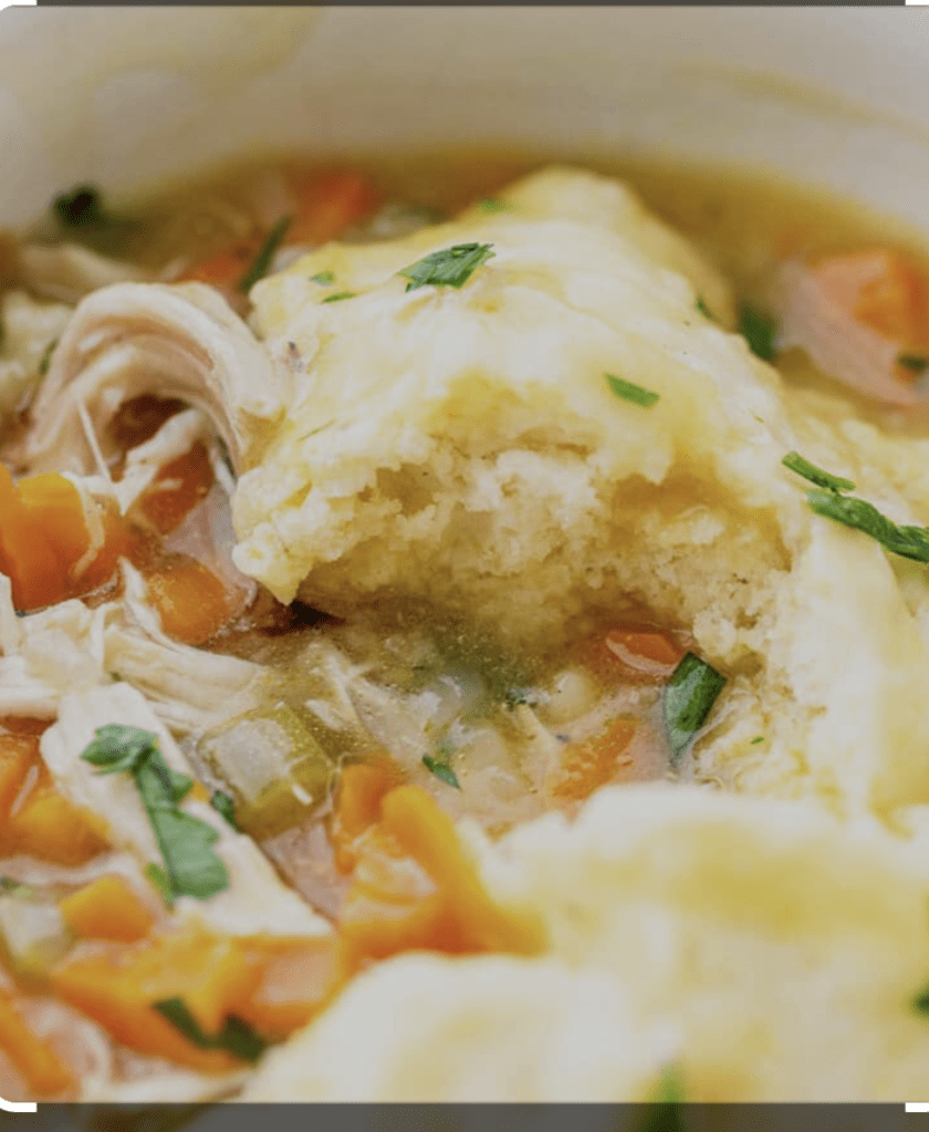 1. Classic Southern Chicken and Dumplings: